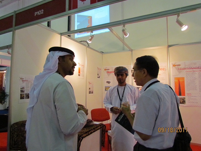環(huán)鼎公司海外市場(chǎng)部一行3人觀摩了2011年9月18日~21日在迪拜舉辦的中東(迪拜)國(guó)際石油、天然氣及石化技術(shù)展覽會(huì)(OGS)。展會(huì)期間,他們廣泛收集資料,并積極宣傳環(huán)鼎產(chǎn)品。同時(shí)還與長(zhǎng)城鉆探、中技開(kāi)等大型國(guó)有公司進(jìn)行廣泛接觸。為環(huán)鼎公司走向國(guó)際市場(chǎng)摸索道路、積累經(jīng)驗(yàn)。